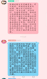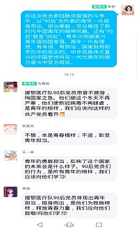 本次活动由各班团支书在QQ群、微信群中组织开展。各班团支书带领班级全体团员认真研读习近平总书记的回信,深刻感悟回信精神并展开讨论。同学们在群内踊跃发言,讨论气氛高涨。其中2018级的陈思宇同学表示广大青年用行动证明,新时代的中国青年是好样的,李金燕同学号召同学们都应当成长为有担当、有本领的青年,在国家危难时刻挺身而出,同学们纷纷为他们的发言点赞。2019级的马璐瑶同学表示在信中感悟到了习近平总书记对青年一代的殷切期望和作为新时代的团员青年应该肩负起的责任和担当,应该向这些共产党员看齐。同学们积极留言表示要向这些“90后”党员学习,努力成为有理想、有本领、有担当的新时代青年。