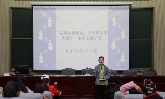 为深入贯彻落实习近平总书记在全国抗击新冠疫情表彰大会上的讲话精神,引导学生树立正确的人生观、价值观。11月8日下午,数学与信息科学学院于学院多功能报告厅举办“弘扬抗疫精神,争当担当有为青年”主题演讲比赛院级初赛,2018级、2019级、2020级学生踊跃参与其中。