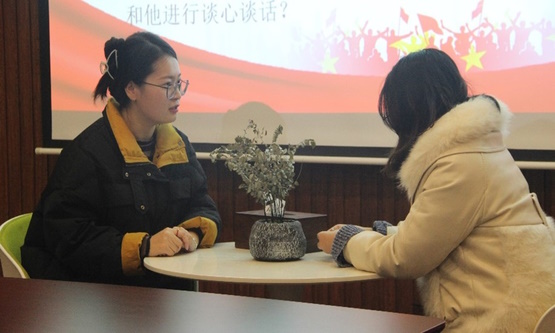 比赛通过案例分析和谈心谈话两个环节展开,在案例分析中,2020级辅导员方好好、2022级辅导员袁刚围绕案例中的问题本质、解决思路及实施方法进行阐述和问答,展现了自身在教育教学、心理咨询、职业规划方面的专业素养。在谈心谈话环节中,选手们充分运用所学理论知识,紧密结合辅导员工作内容和学生成长成才规律,认真倾听、理解学生需求,帮助学生解决实际问题,展现出强烈的责任心和人文关怀。郑园园从大赛要求、题型解读、解题思路、答题技巧等方面对备赛老师进行详细指导。她希望备赛老师要有坚持不懈的努力、勇往直前的勇气,对于比赛项目要精益求精、流程要精雕细琢,注意比赛和实际面试中的规则和要求,在表现形式上不断精进。