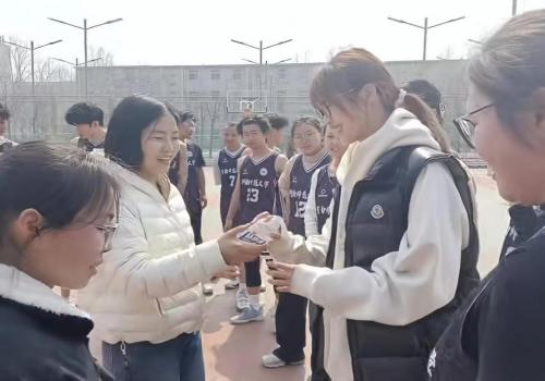 王娴围绕赛事特点叮嘱赛场安全事宜,从赛前热身、赛场动作规范、赛后身体恢复等方面,提醒队员做好自我保护、规避运动损伤。宋梦妮强调安全第一,鼓励队员在保障安全的基础上勇于拼搏、加强配合、调整竞技状态,全力发挥竞技水平、赛出数院学子风采,同时表示学院会做好各项后勤保障服务,为大家参赛保驾护航。随后,两位老师为全体队员发放饮用水、水果等慰问品。队员们纷纷表示,真切感受到学院的关怀与重视,后续将牢记安全要点,以饱满热情和昂扬斗志参赛,全力为学院争光。