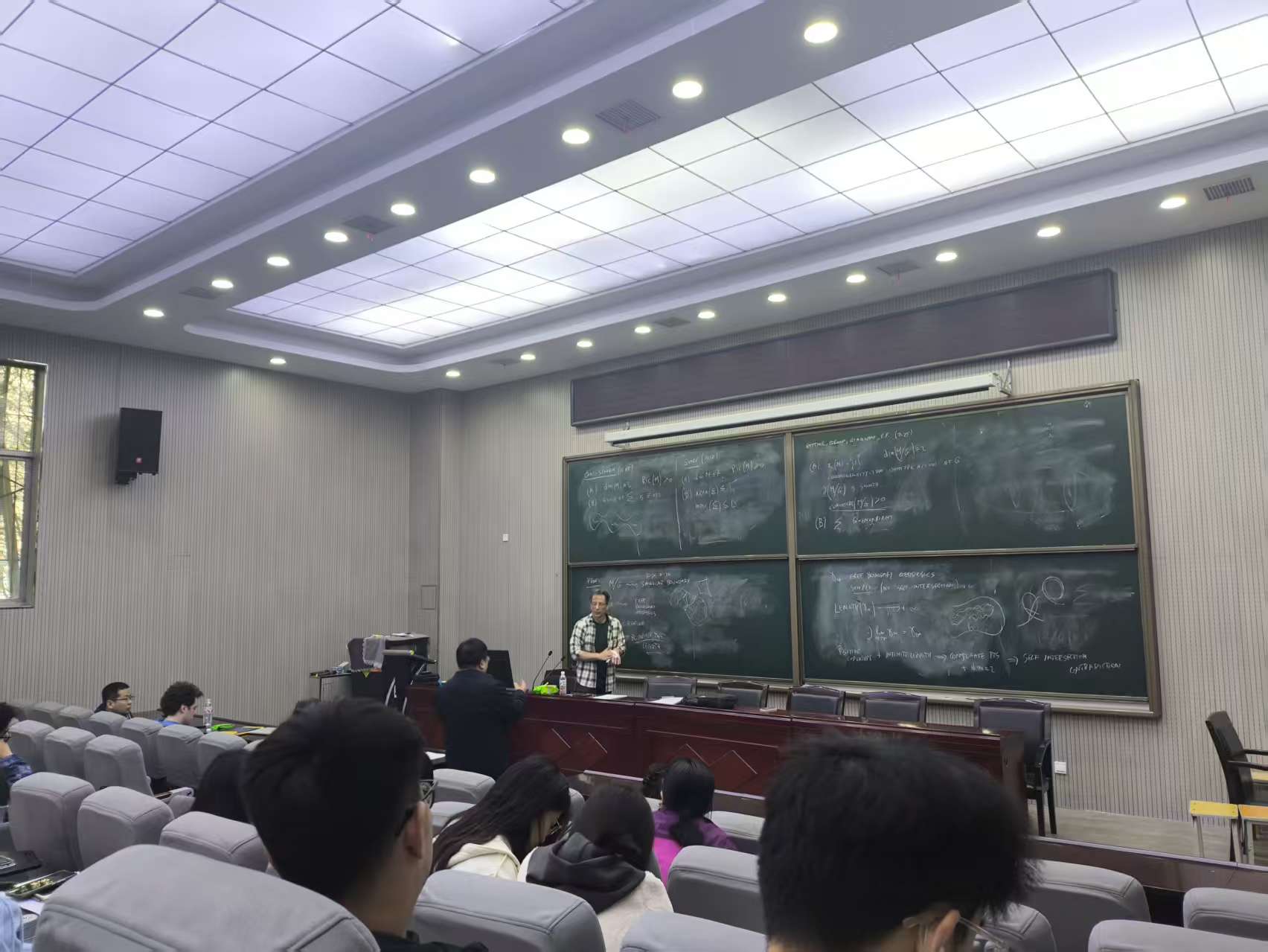 Paolo Piccione院士重点阐述了著名的Bernstein问题的研究进展和最新结果。他首先讲述了在闭黎曼流形上,紧连通李群等距作用下不变的极小子流形,并依据项-劳森对称约化原理说明了这类子流形等价于轨道空间中带奇异共形度量的测地线;然后,详细讲解了这类奇异空间上自由边界测地线的存在性定理,并在边界光滑时给出相应的紧性定理;最后,Paolo Piccione院士介绍了其团队在相关问题上的最新结果,阐明了所得结果的主要证明思想及重要意义。