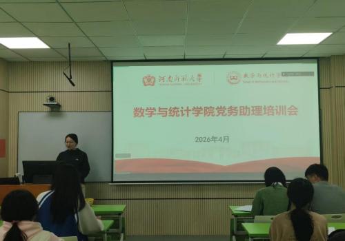 2026年4月20日下午,数学与统计学院在数学院S107教室召开党务助理培训会。会议由学院2024级辅导员方好好主持,学生党支部书记、各年级党务助理现场参会,2025级相关负责人线上参会。