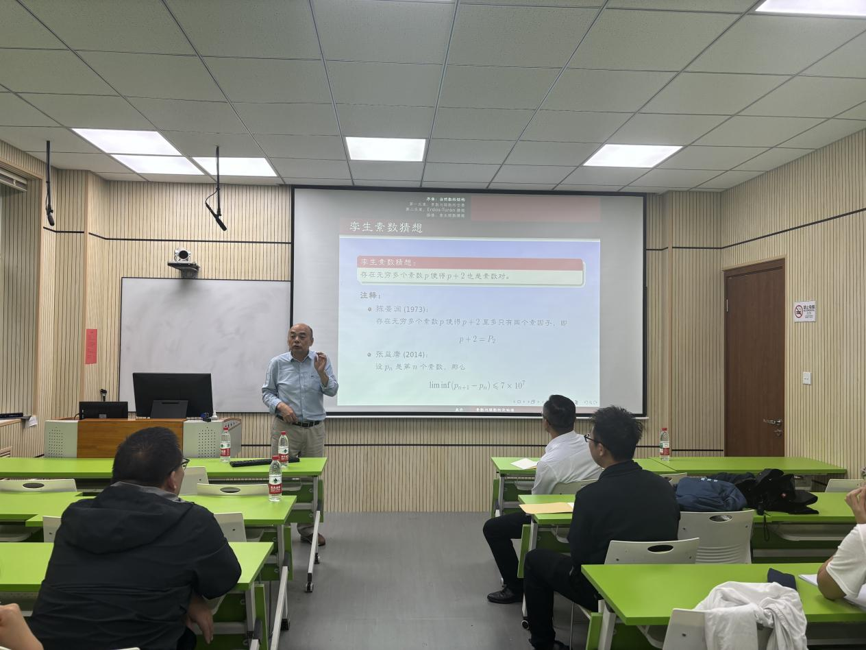 9月27日上午,应数学与统计学院邀请,法国国家科学研究中心、东巴黎大学吴杰教授在数学院107会议室做题为“脆数和素数交响乐”的专题报告。报告由黄广月教授主持,学院相关师生共同聆听了此次精彩讲座。 本次报告中,吴杰教授首先从整数的两个最基本运算“加法”和“乘法”讲起,然后引出素数分布在数论研究中的核心地位。随后,吴杰教授还介绍了“脆数”(或者称为“石榴数”)的概念,它指的是具有某些特殊因子结构的整数,对脆数的研究将有助于揭开素数分布背后的神秘面纱。紧接着,吴杰教授还给大家阐述了“筛法”是如何在孪生素数猜想上发挥作用的,此外,他还指出Bombieri-Vinogradov定理是推动孪生素数猜想整个证明过程的关键引擎。吴杰教授还指出如果筛法能够突破以往的局限,将得出更加接近孪生素数猜想的结论。在报告的最后部分,吴杰教授还给大家分享了数学家Erdős在数论领域的若干著名猜想,并鼓励年轻学者勇于挑战“大问题”,拓展数学的未知边界。 讲座结束后,吴杰教授还与现场师生就脆数性质与素数分布等问题进行了深入交流。此次学术报告开阔了学院师生的基础数学视野,点燃了大家投身基础研究的热情。 专家简介: 吴杰,法国国家科研中心特级研究员(CRHC)、东巴黎大学博士生导师。1982年本科毕业于南京航空航天大学飞机制造专业,1984年硕士毕业于武汉大学数学专业,1990年在法国南巴黎大学获得博士学位。现主要从事解析数论、自守形式的解析理论等领域的研究,并在素数分布、指数和、模形式与L-函数等多个领域作出了众多基础性的贡献。在国际一流期刊上发表论文100余篇,其研究成果在国际数论界享有盛誉。 (数学与统计学院 杨启玉)