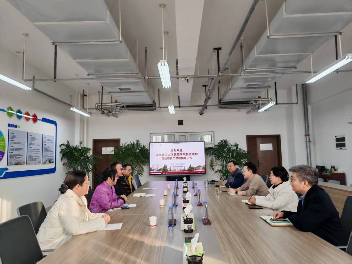 2025年12月29日上午,河南理工大学民政学院罗景莉主任一行4人到学院进行考察交流。学院院长王川,副院长王芳、姜玉钦、杨刚刚参加会议,双方围绕人才培养与产教融合等议题展开深入探讨。