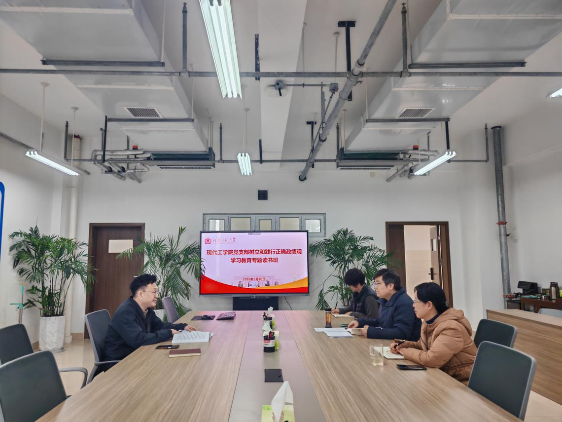 为落实中央、省委“四个深入学习”要求,引导支部党员树立和践行正确政绩观,精准把握全国两会精神核心要义,2026年3月20日上午,现代工学院党支部举办树立和践行正确政绩观学习教育专题读书班,学院全体党员参加学习。本次读书班由学院执行院长王川主持,采取领学解读、专题研讨相结合的方式,推动理论学习入脑入心、落地见效。