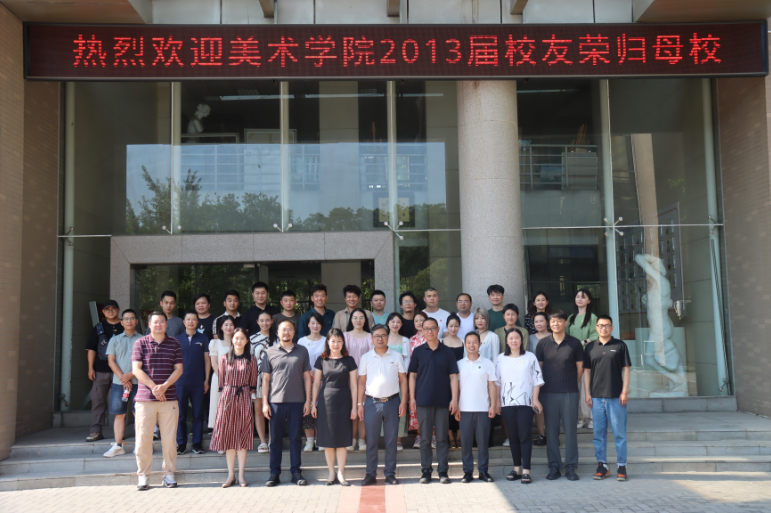 为庆祝河南师范大学百年华诞,6月23日,美术学院2013届部分校友毕业十周年重返母校并开展座谈与捐赠活动。座谈会和捐赠仪式在美术学院党员活动室举行,发展规划处处长、校友与基金工作办公室主任苏现伐,后勤管理处副处长滕梁莹,美术学院领导班子全体成员及教师代表参加了活动,活动由美术学院副院长王霄主持。