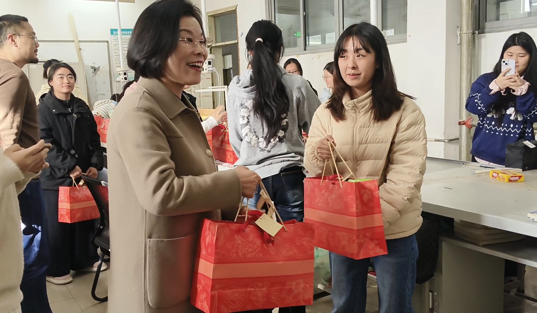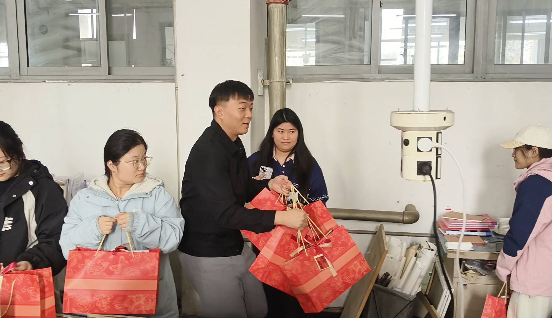 这份满载心意的“暖心大礼包”暗藏巧思,每一件物品都承载着学院的实用关怀与美好祝愿:精心搭配的考试文具套装,寓意“妙笔生花”;寓意吉祥的旺仔牛奶,寄托“运气旺旺”的期许;实用便捷的订书机,象征 “一‘订’(定)成硕、”的美好祝愿。2026 届美术学专业学子袁歌表示:“学院的关怀既贴心又实在,让我们在冲刺关头倍感温暖与底气,这份牵挂将化为我们前行的强大动力,我们定当全力以赴、奋勇争先,不辜负学院的悉心栽培与殷切厚望!”