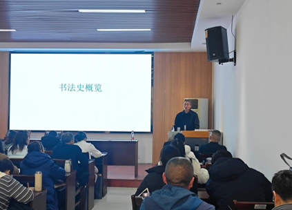 开班典礼结束后,孟会祥老师以《书法史概览与书法实践》为题开展专题授课。他结合经典书法作品,深入分析不同书体的书写技巧,全面且细致地讲解了书法的发展历史,切实拓宽了参训教师的专业视野。