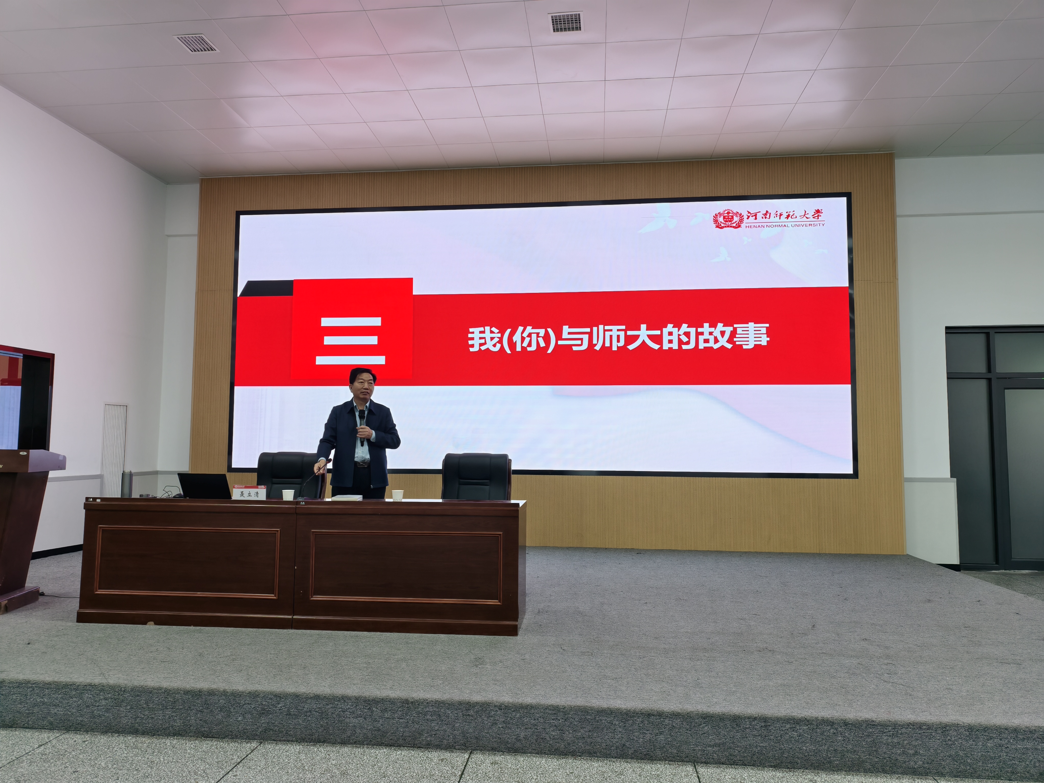 宣讲会上,聂立清教授以“岁月有痕——我们的师大故事”为主题,详细介绍了师大的历史沿革和蓬勃发展;随后,他结合自己从求学到工作在师大近四十年的教学与管理经历,图文并茂向现场师生深情讲述了学校地标性建筑如新五五四楼、平原楼等历史发展脉络,借师大的一草一木深情回顾了学校创立初期到如今蓬勃发展的峥嵘岁月。