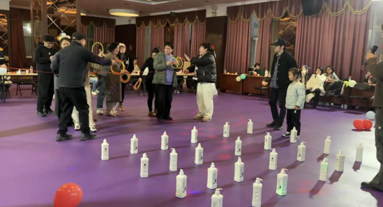 本次团建设置了多项兼具趣味性、协作性的游戏环节,各环节各有特色,欢乐不停。开展夹乒乓球接力时,全体教师被分为两队,每队十人,一场充满趣味的团队比拼正式开启。两队队员依次接力,手持筷子小心翼翼地将乒乓球从起点托盘运送至终点,既要克服乒乓球易滑落的难题,又要与队友默契配合把控节奏。队员们眼神专注、动作谨慎,前方队员稳步传递,后方队员高声加油,偶尔的失误也挡不住大家的热情,捡起球重新出发的坚持,让团队温情在赛场悄然蔓延;