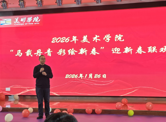 春临岁末,情暖校园。为迎接2026年新春佳节,进一步凝聚教师队伍向心力,丰富教职工文化生活,营造团结和谐、积极向上的集体氛围,1月26日,河南师范大学美术学院举办迎新春教师联欢晚会。学院全体教师齐聚一堂,在趣味互动中放松身心,在携手协作中凝聚共识,以昂扬向上的精神风貌迎接新春的到来。