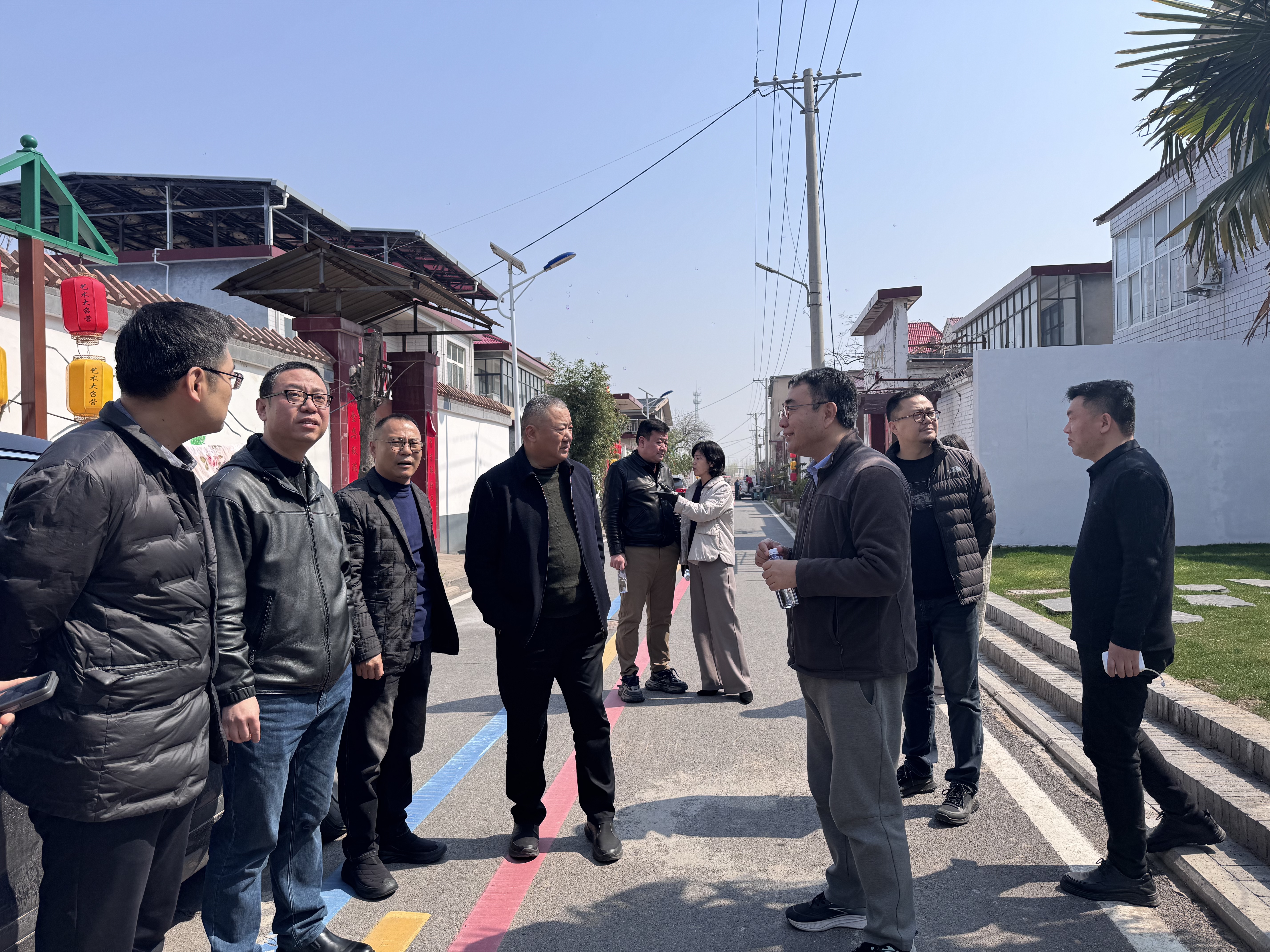 签约仪式结束后,参会嘉宾与美术学院师生代表一同开展现场考察,深入走访大召营村金岭画家部落、金岭美术馆、王金岭故居、郭仲隗纪念馆及“十八坊”手工艺街区,实地查看村庄基础设施、艺术创作阵地及文创产业发展情况。考察过程中,师生代表与驻村画家、本土手艺人亲切交流,详细了解村庄艺术资源挖掘、非遗技艺传承及村民对美育服务的实际需求,认真记录乡村风貌、民俗文化等创作素材,为后续精准开展文艺赋美实践收集第一手资料。师生们纷纷表示,将立足大召营村特色,把专业创作与乡村需求相结合,用画笔描绘乡村之美、用艺术赋能乡村发展。
