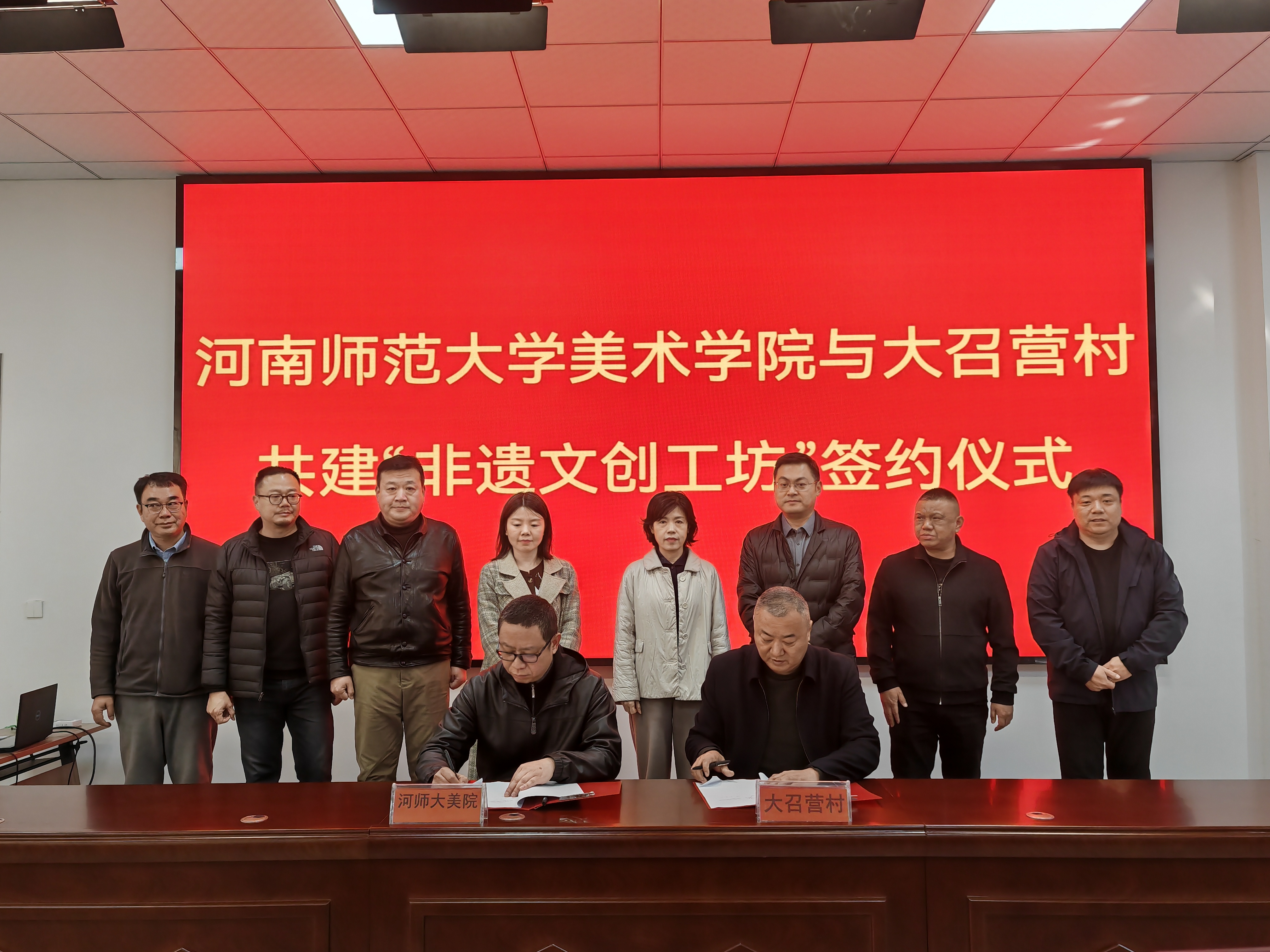 为深入贯彻落实国家文艺赋美乡村政策的相关工作要求,推动文艺力量下沉乡村、服务乡村,以美育赋能乡村全面振兴,3月20日上午,河南师范大学美术学院与新乡市大召营村文艺赋美乡村结对共建签约仪式在大召营村艺术综合培训中心举行。美术学院院长陈巍、新乡市文学艺术界联合会副主席王茜、新乡市美术家协会主席李晓雷、新乡县文旅局局长范凤雅等领导出席仪式,美术学院领导班子、大召营村“两委”负责人、美术学院师生代表、驻村艺术家及村民代表齐聚一堂,共同开启校地协同、文艺赋美乡村的崭新征程。
