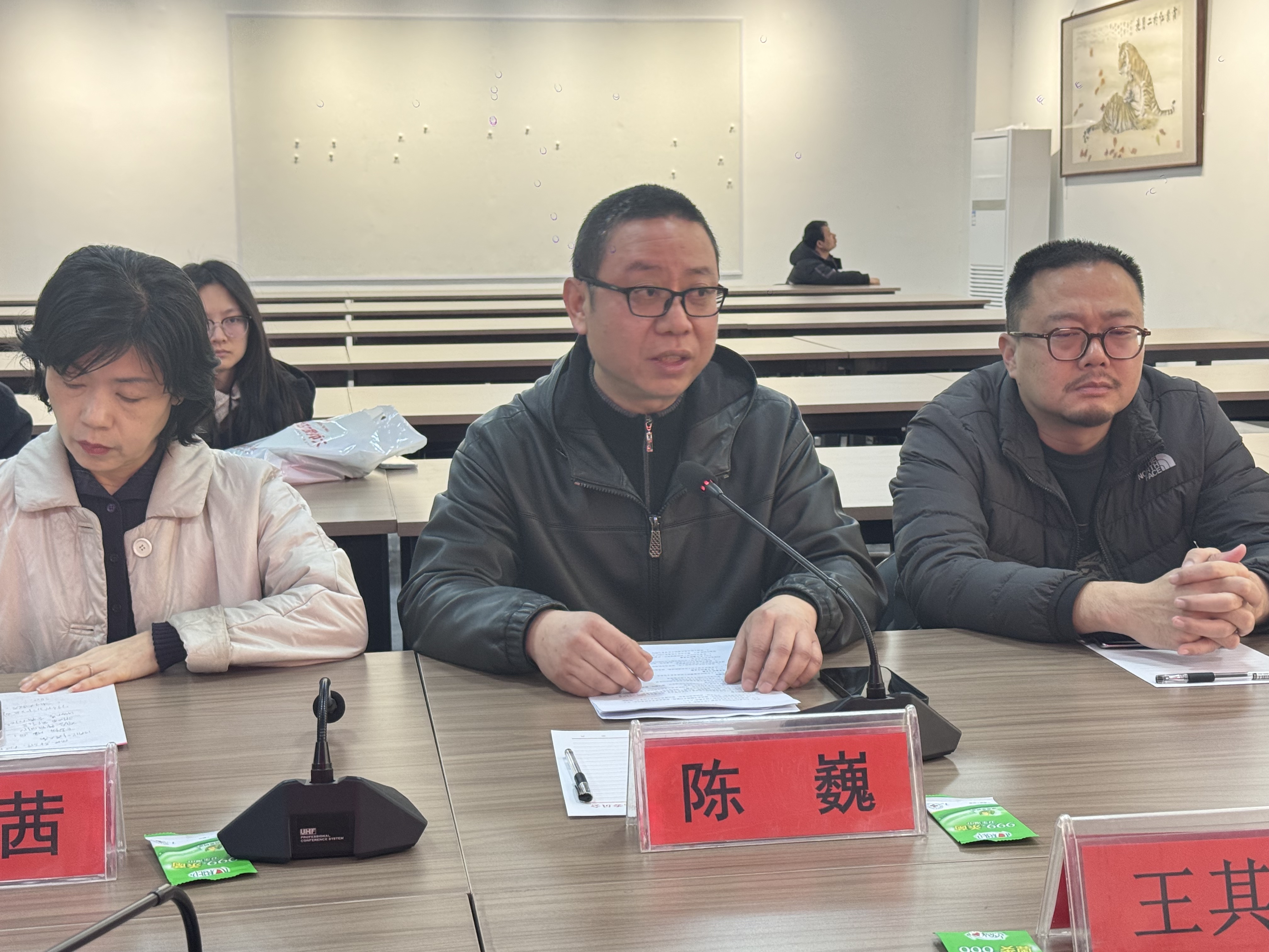 美术学院院长陈巍在讲话中表示,文艺赋美乡村是高校践行实践育人理念、履行社会服务职能的重要途径,更是美术学科发挥专业优势、助力乡村振兴的责任所在。他指出,大召营村深厚的文化底蕴、鲜明的艺术特色的成熟的乡建基础,为校地合作提供了广阔平台,美术学院将以此次结对共建为纽带,整合优质师资与学生力量,深度融入大召营村艺术发展实践,让青年学子在服务乡村中锤炼专业本领,让高校艺术资源转化为乡村振兴的实际动能,助力打造“艺术大召营”特色品牌。