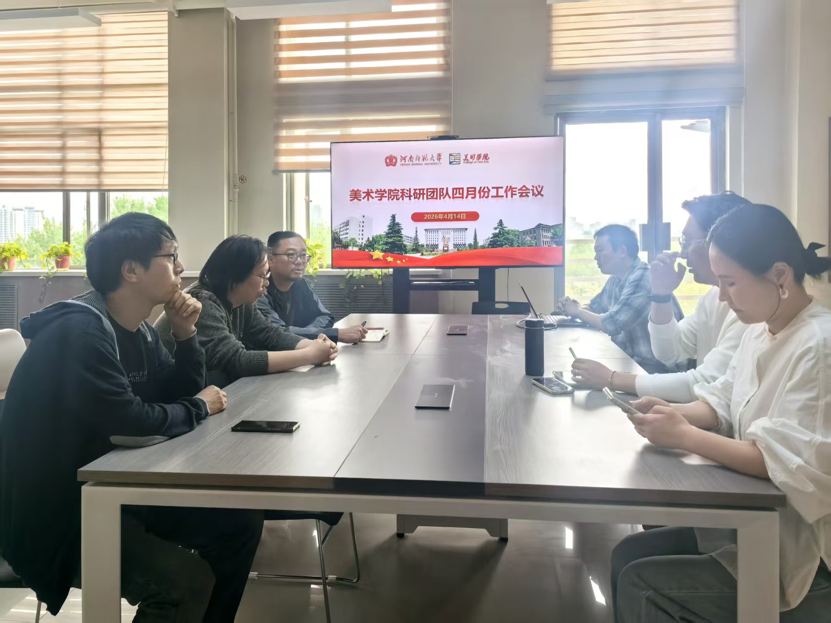 为精准推进各科研团队建设提质增效,统筹抓好2026年春季学期核心科研任务落地,4月14日,河南师范大学美术学院科研团队四月份工作会议在学院科研工作坊顺利召开。美术学院副院长王霄、各科研团队负责人、学术骨干及青年教师代表参会,会议由王霄副院长主持。