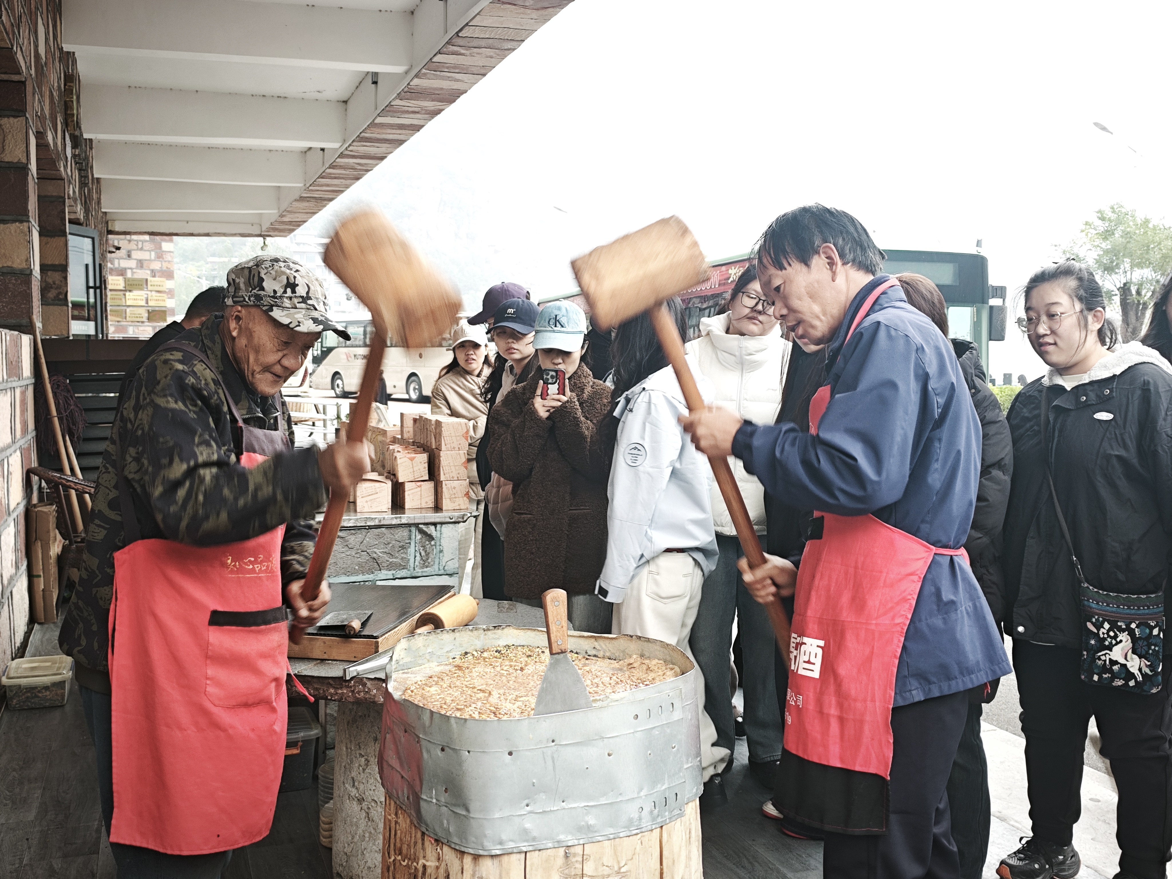 随后,同学们在纪念馆旁体验林州木锤酥工艺,锤身与糖胚碰撞出“咚咚”的闷响,像极了老座钟的摆声,敲打着时光的节奏,几十年的经验都融在老师傅这双布满老茧的手心里,仿佛又回到当初供销社职工“一根扁担两只筐,风雨无阻运货忙”的艰辛奋斗中。大家纷纷表示,要从“扁担精神”中汲取奋进力量,将艰苦奋斗、甘于奉献的精神融入日常工作与学习,以实际行动诠释新时代青年的责任与担当。