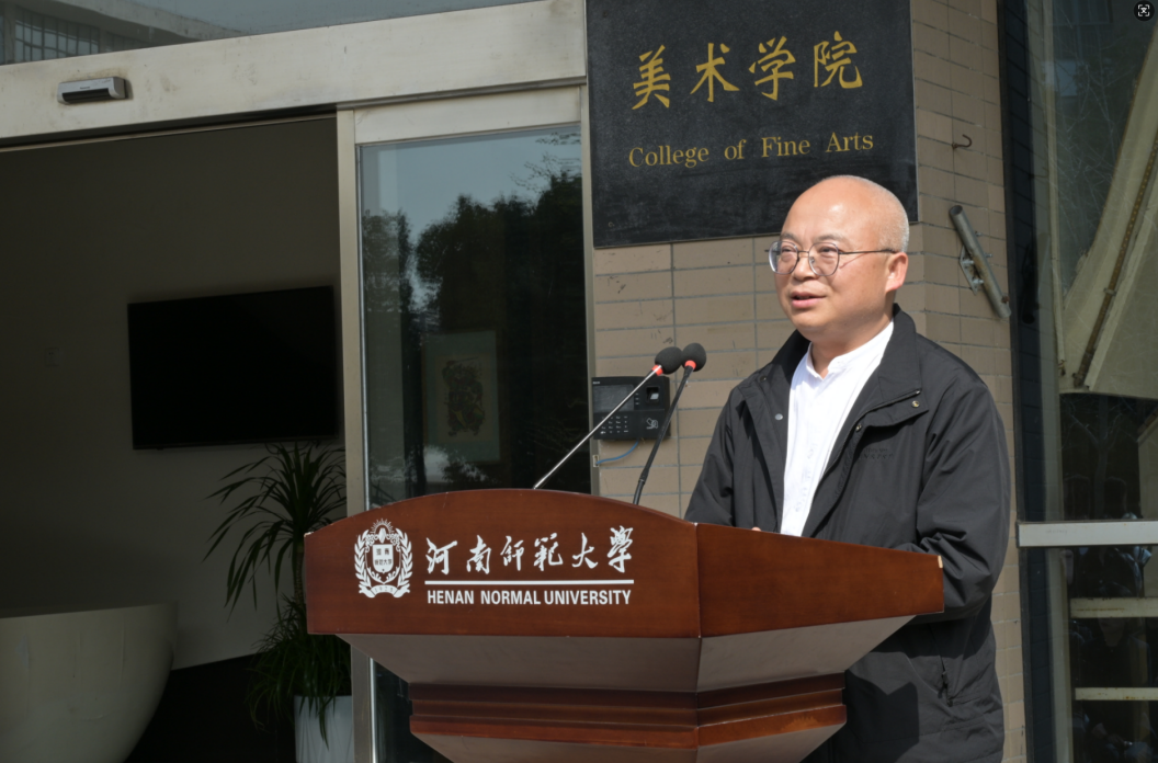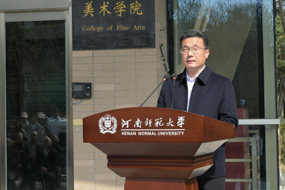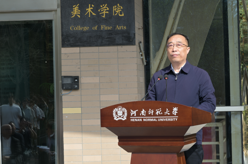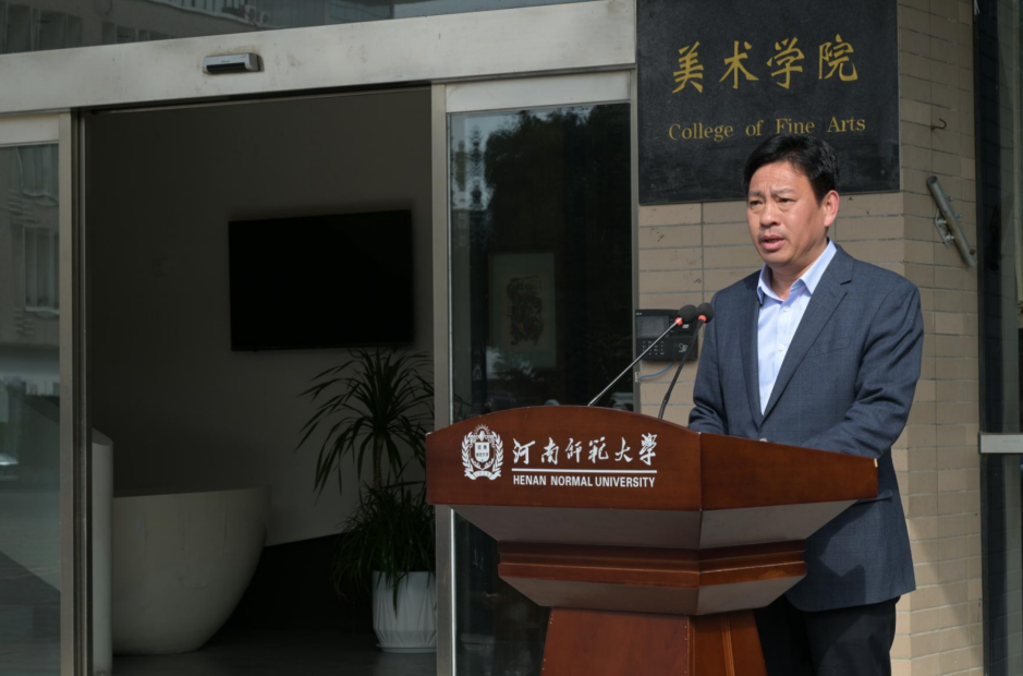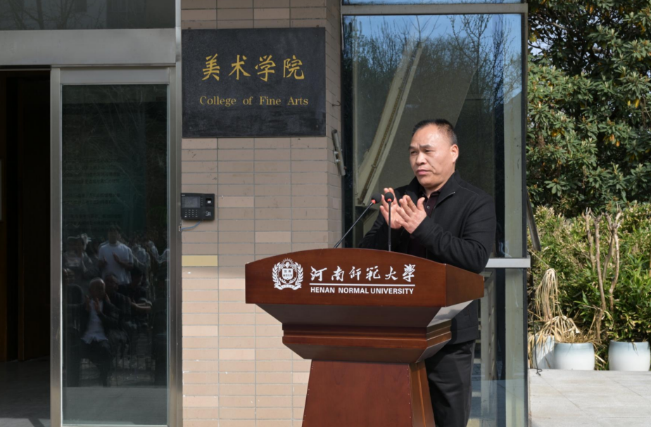 开幕式环节,河南师范大学党委常委、副校长杨宝刚首先致辞,他代表河南师范大学向关心支持本次展览的各级领导、各界人士致以诚挚敬意,向莅临现场的各位嘉宾、师生代表表示热烈欢迎。他详细介绍了学校百年办学积淀与丰硕的育人成果,并表示,此次巡展落地学校,是深化落实教育部美育浸润行动通知要求、推动高雅艺术进校园的重要举措,既是一场高品质的丹青盛宴与美育盛典,也为学校美育文化建设添上了浓墨重彩的一笔。同时,他寄语美术学院广大师生,要以此次展览为契机认真观摩学习,坚持以精品奉献人民、用明德引领风尚,不断提升作品思想艺术水准,努力培养造就有信仰、有情怀、有担当的高素质美术人才。