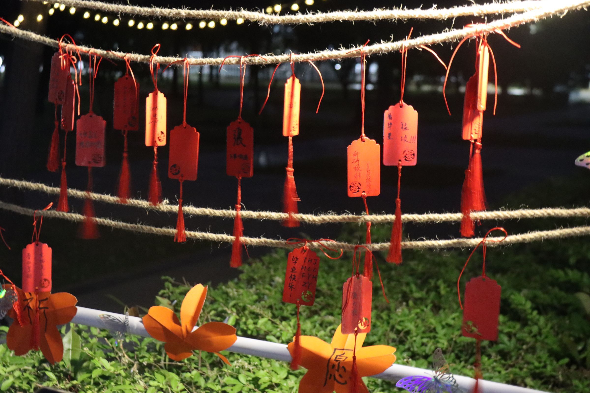 夕阳西下,华灯初上。活动在《我相信》的歌声中拉开帷幕。现场设置“环梦成真”、套圈“声动旋律”点歌台、“心语传情”信箱投稿等9个活动摊位,涉及情感传递、团队合作、创意手作等多个方面。“环梦成真”环节巧妙地将心理健康知识、防电信诈骗、用电须知等安全常识融入活动之中,同学们通过完成一定数量的题目获取套圈,将自己心仪的奖励收入囊中。“珠光宝气”手工串珠小工坊吸引了大量同学驻足,完成一定难度的动作即可得到相应物品奖励。不少同学离开时手上多了闪闪发光的手串,心里得到了很大的满足感和获得感。“心语传情”信箱前,老师和同学们纷纷执笔写下对远方亲朋好友的思念和祝福,让大家学会爱,表达爱,传递爱。整个游园会现场妙趣横生,精彩纷呈,既有参与活动的乐趣,又充盈着收获奖品的欢乐。