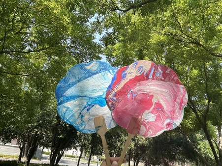 扇舞丹青绘古风,墨染芳华醉流年。活动伊始,活动负责人为同学们介绍了漆器的历史发展与漂漆扇的制作技巧,展示了制作漆扇的花式手法。接着,在负责人的讲解带领下,同学们开始跃跃欲试,纷纷调漆,不断尝试着不同的配色以及手法。彩漆滴入水中,随着水流的搅动变换出不同的图案,将团扇缓缓放入水中,大漆的色彩附着在扇面上,穿插交错,流云变换,精致演绎了漆扇的诗情画意。随着时间推移,一幅幅精致美丽的漆扇作品逐渐呈现在大家面前。每一把漆扇都独一无二,展示着制作者独特鲜明的审美风格,同时也散发着中国传统漆艺的魅力与旺盛生命力。活动结束后同学们纷纷表示,通过手工制作漆扇,不仅锻炼了自己的动手能力和创造力,更重要的是,让他们在繁忙的工作和学习之余,找到了一种放松心灵、舒缓压力的有效方式。