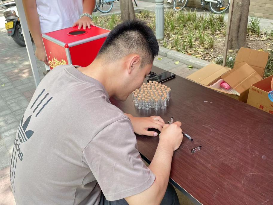本次活动以分享漂流瓶的形式开展,为期两天。活动前,工作人员准备了漂流瓶和漂流信。参与师生将在现场领取漂流信纸,将自己的心愿、理想亦或者对他人的祝福写下,然后由工作人员将其放入漂流瓶内后,随机领取一个其他参与者的漂流瓶。活动现场热闹非凡,在崇德楼附近搭建的帐篷处,参与漂流瓶活动的老师和同学络绎不绝,在志愿者们细心地讲解下,同学们对此次活动表现出极大兴趣,纷纷驻足留下了自己心里的“漂流瓶”。每个漂流瓶中不仅有同学们对于未来的期待,也有老师对学子们的期望与祝福。随后的抽奖环节更将本次活动推向高潮,引得大家欢笑连连。