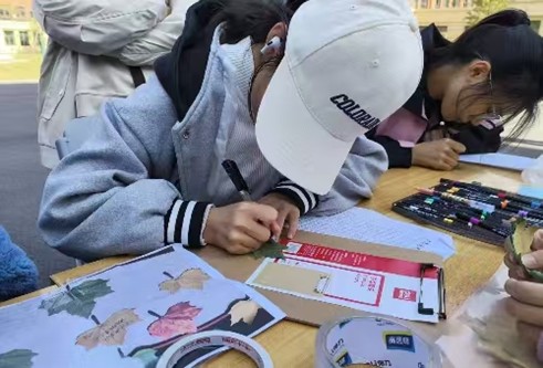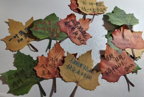 活动分为前期筹备和创意写诗两个环节。前期筹备阶段,由相关负责人进行流程策划、场地布置和活动宣传。在创意写诗环节中,负责人首先介绍了此次活动的举办宗旨与具体要求,强调了其在维护学生们心理健康方面的独特价值。随后,同学们在摊位前领取树叶,发挥丰富的想象,构思秋天与文字的关联。他们或凝神静思,或挥毫泼墨,在小小的树叶上,用一句句饱含深情的诗行,一两句真挚动人的感悟,描绘着自己心中的秋天。