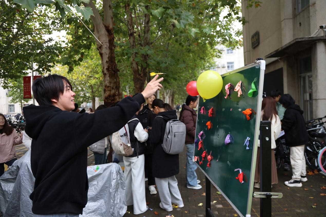 本次活动以“拾月拾心,向阳而生”为主题,精心设计一系列户外活动,包括“扎爆烦恼——情绪宣泄释放区”、“玩偶互动疗愈角——情感支持陪伴区”、“心‘晴’扭蛋机——烦恼释放与温暖传递区”。扎破写着烦恼的气球,以具象化的方式帮助同学们宣泄压力、缓解焦虑;心“晴”扭蛋机中的鼓励寄语与解压建议,在传递善意中促进交流提升凝聚力;可爱的玩偶互动带来欢乐,为寒冷秋日增添暖意。活动结束后,同学们带着精心准备的小礼品和心底的温暖积极的面对新挑战,心中仍在坚持自己的梦想,勇往无前。