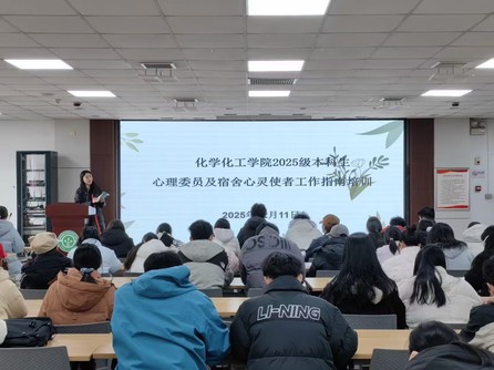 为明确心理委员和宿舍心灵使者的角色定位与职责,普及心理健康知识,12月11日中午,化学化工学院于化北5楼会议室举办宿舍心灵使者工作指南培训会。2025级班级心理委员、宿舍长及专职辅导员何亚平共同参会。