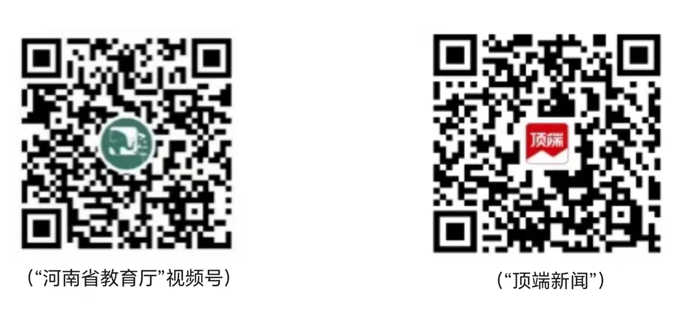 扫码关注“河南省教育厅”视频号,点击屏幕上“预约”,待直播开始即可观看。或扫码“顶端新闻”,直接观看直播。