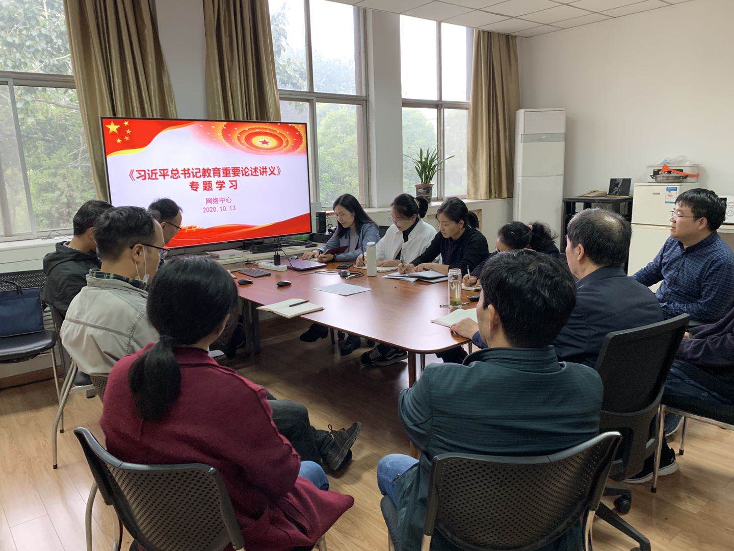 2020年10月13日下午,网络中心全体职工在三楼会议室召开《习近平总书记教育重要论述讲义》政治理论学习会,会议由范黎林主任主持。