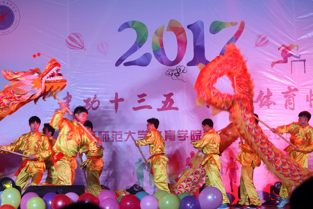 体育学院院长刘献国激扬澎湃的致词拉开了晚会的序幕。整场晚会的节目内容流行与古典兼收,温情与火热并举,形式多样,精彩纷呈。其中,武术表演《男儿当自强》潇洒的身姿,刚健有力的动作,将体育学子的风采表现的淋漓尽致。跆拳道表演更是嗨翻全场,动感的音乐,整齐划一的出拳,出腿,引得台下尖叫连连。歌曲串烧,新颖别致,独具一格,让人感受到了不一样的情怀。而令人捧腹大笑的小品表演《三顾茅庐》更是让观众乐不可支,幽默风趣的台词,滑稽搞笑的动作引得观众们掌声连连,欢笑不断。接下来,魅力四射,引爆全场的街舞《WE》的惊艳登场,则跳出了青春的舞步,跳出了生命的色彩,跳出了专属于他们的靓丽风姿,博得现场掌声雷动,欢呼声喝彩声不绝如缕。充满神奇与梦幻的魔术,锣鼓喧天的舞龙舞狮,活力四射的啦啦操,独具特色的中国舞,搞笑雷人的相声表演,一个个精彩的节目使现场气氛层层升温,给观众呈现了一场精彩绝伦的视听盛宴。晚会锣鼓喧天中落下帷幕,全体表演人员齐聚舞台,留下最美的合照。