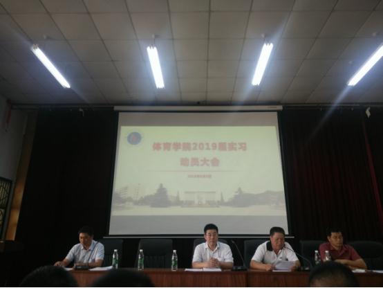 9月3日上午,体育学院2019届实习动员大会在万人餐厅三楼多功能报告厅召开。体育学院院长刘献国,党委副书记朱庆福,副院长岳新坡,实习指导教师霍军、陈华伟、乔平均、杨军英、邢双涛、王建珍、焦现伟、蔡端伟、李玉周、江大雷、金林子、刘水庆、李军等莅临现场。会议由学院教学秘书霍军主持。