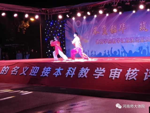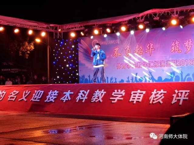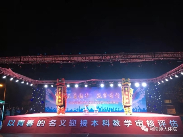 为表达体育学院对全体2018级新生的欢迎之情,落实学院“聚力新青年,建功新时代”主题教育实践活动,10月21日晚,体育学院在西区球类馆前篮球场举办“不负韶华,筑梦前行”教学汇报演出暨2018迎新晚会。学院党委书记岳贤锋、党委副书记朱庆福、副院长岳新坡、全体辅导员及2018级全体新生参加了晚会,岳贤锋书记在晚会开始前致辞。