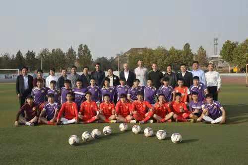 讲话结束后,李学志、吉斯•德容和北京水柔风文化发展有限公司董事长叶新萍共同签署了中荷足球青训基地建设合作备忘录。樊泽民、赵国祥、吉斯•德容、郭蔚蔚为我校国际足球教育学院揭牌。