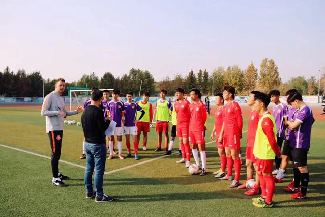 当天下午,米歇尔•范德沃夫在东校区足球场为体育学院足球专选班的学生进行了一场现场教学。教学结束后,专家组一行前往新乡市凤凰山生态区,实地考察了新乡市申报的全国青少年校园足球改革试验区部分规划场地。