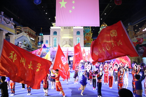 6月14-17日,2019年第八届全国全民健身操舞大赛河南分站赛暨河南省第八届健身操舞锦标赛在新密市银基冰雪世界盛大开幕了。本次赛事以2022北京冬奥会为契机,赛事场地选择在“冰雪世界”,由国家体育总局体操运动管理中心、河南省教育厅、中国健美操协会主办,全国全民健身操舞推广委员会、河南省学生体育总会啦啦操健身操(舞)协会、新密市银基冰雪世界承办。共有来自全省各地市的大、中、小学87支队伍,近2000人参赛。