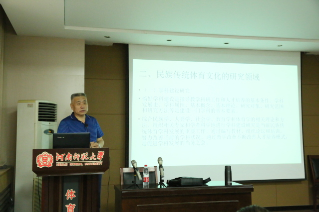 在报告中,方征教授从民族学与人类学的田野调查、文化相对论、整体论、适应论、实践论等五个方面进行了生动详细的阐述。他指出,正确的科研方法、明确的观念是中国少数民族传统体育文化田野调查的基础,文化决定着少数民族传统体育的组织形式,只有把体育纳入到民族文化的整体中去加以说明,我们才能通过相关民族的文化逻辑获得传统体育活动的意义,也才可能获得对体育方式的深刻认识和全面掌握。此外,方教授还强调,在少数民族传统体育调查中,要关注文化的整体,从整体审视个体,从个体透视整体。