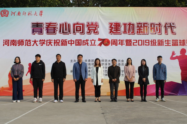 为积极响应全民健身、全民健康号召,扎实推进“健康中国”战略。10月13日上午9时,由我校团委、学生会主办,我院团委、学生会承办的2019级新生篮球赛开幕式在西区水泥篮球场举行。校团委书记孙冬青,校体委副主任王健,体育学院党委书记岳贤锋,各学院团委书记等领导老师出席开幕式,本次比赛裁判员、各学院参赛队300余人参加开幕式。开幕式由院团委书记董文可主持。