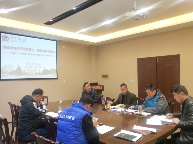 11月19日,学院领导班子成员集中学习了《习近平关于“不忘初心、牢记使命”论述摘编》、《习近平新时代中国特色社会主义思想》、《中国共产党人的初心和使命,就是为中国人民谋幸福,为中华民族谋复兴》、《坚定理想信念,始终是共产党人安身立命的根本》、《实现中华民族伟大复兴的中国梦》等主要内容,并集中观看了《往事如烟》纪录片。20日上午,班子成员们围绕习近平总书记在中央“不忘初心、牢记使命”主题教育工作会议上的重要讲话精神,以“党的政治建设,全面从严治党”为主题,展开交流研讨。各班子成员,立足本职工作和学习重点,根据各自撰写的研讨发言材料,结合思想和工作实际,谈认识、谈体会,找问题、找差距,明思路、明方向,深挖细研,交流心得。
