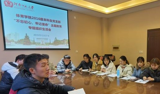 12月7日下午,体育学院2016级本科生党支部“不忘初心、牢记使命”主题教育专题组织生活会在体育学院办公楼二楼会议室举行。校纪委书记张尚字到会指导并讲话。支部全体党员参加会议。