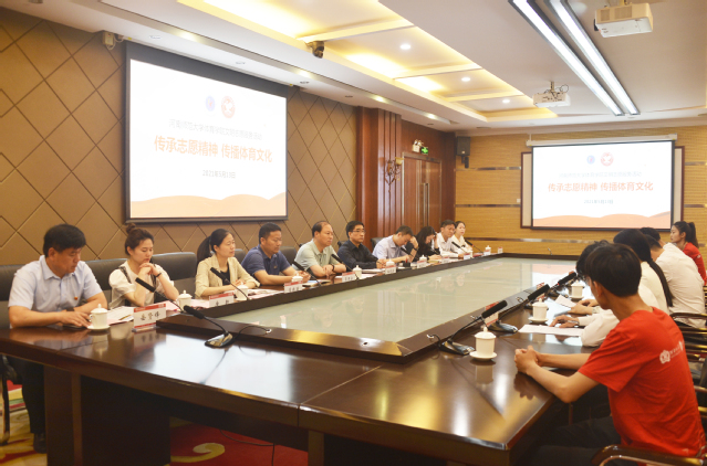 5月13日上午,体育学院“传承志愿精神 传播体育文化”志愿服务活动启动仪式在勤政楼第三会议室举行。校党委副书记、工会主席梅宪宾、相关部门负责人及体育学院负责人出席活动。仪式由学院党委书记王允主持。