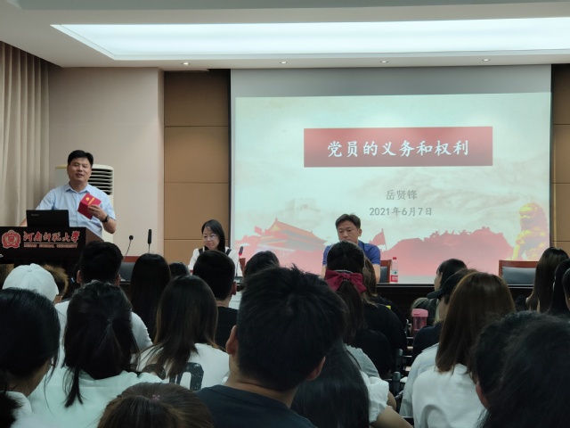 为做好毕业生党员的离校教育工作,引导毕业生党员自觉学习党的光辉历史,强化责任意识和担当意识,6月7 日上午,体育学院举行2021届毕业生党员最后一堂党课,院党委书记王允、院长岳贤锋、党委副书记王芳出席,党员教师代表和全体毕业生党员参加。本次党课由王芳主持。