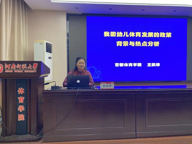 王凯珍教授从开展幼儿体育的重要性、迫切性和时代性为切入点,详细的解读了近年来我国幼儿体育出台的政策背景,聚焦幼儿体育发展的五大热点,分析了当前幼儿体育理论与实践层面上凸显的若干问题和发展需求与广阔前景。同时,对当前幼儿体育热议问题进行学理性和操作层面的深入探讨。王凯珍教授报告主题鲜明,内容深入浅出、高屋建瓴、信息量大,突出问题导向,分析精辟透彻,具有较强的指导性。在场师生均受益匪浅。