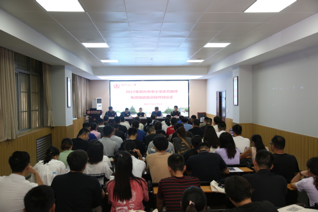 8月15日上午,2022年郑州市中小学体育教师专项技能培训班在我院一楼报告厅成功举办。郑州市教育局教师教育处副处长谭斌艳,河南师范大学体育学院党委书记王允,郑州大学体育学院教授刘晖,河南师范大学体育学院社会服务工作秘书岳耀鹏,以及来自郑州市中小学的一线教师等100余人参加了仪式。仪式由体育学院副院长刘光同主持。