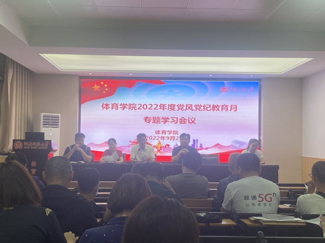 为深化党内监督,推动全面从严治党向纵深发展,根据校党委党风党纪教育月活动工作安排,9月27日,体育学院在一楼大会议室召开2022年度党风党纪教育月专题学习会议,学院全体教职工参加。会议由院党委书记王允主持。