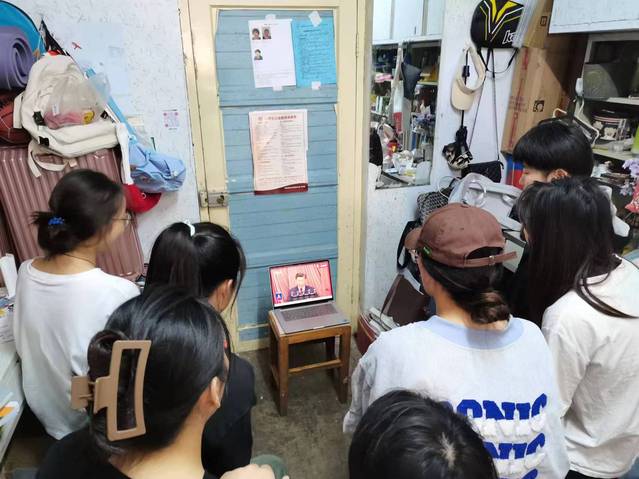16日上午9时起,全体师生早早等待在直播大屏前。大会在雄壮的国歌声中拉开帷幕。直播收看过程中,全体师生跟随会议程序,全体起立奏唱国歌,全体默哀,之后认真听取习近平总书记代表十九届中央委员会向大会作的题为《高举中国特色社会主义伟大旗帜 为全面建设社会主义现代化国家而努力奋斗》的报告。