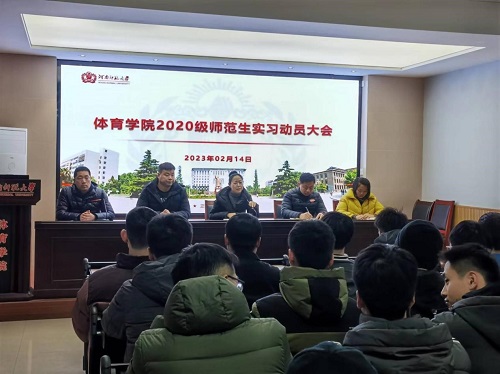 2月14日下午6:00,我院在东区一楼会议室召开2020级体育教育专业教育实习动员会。党委副书记王芳、副院长刘光同、团委书记刘广宣、2020级辅导员周倩羽、兼职辅导员董强、实习指导教师及2020级体育教育专业全体学生参加动员会。会议由学院教学秘书朱春山主持。