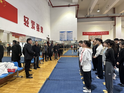 3月1日上午,省民族宗教委民族一处副处长张运涛,省体育局群体处干部郝栋,省民族宗教委民族一处三级主任科员杨宝石及新乡市民宗局党组成员、副局长魏尚平、新乡市体育局副局长张德君等一行9人,在体育学院院长岳贤锋、副院长孟国正及各训练队教练的陪同下,对我校第九届全省民族运动会筹备工作进行督导检查。