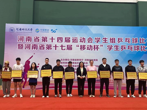 河南省第十四届运动会学生组乒乓球比赛暨河南省第十七届“移动杯”学生乒乓球比赛、河南省第十四届运动会学生组网球比赛暨河南省第十三届学生网球比赛于5月22日至28日分别在河南科技大学、洛阳理工学院隆重举行。经过7天的奋力拼搏,我校乒乓球代表队获得3金3铜一个第5名,网球代表队获得1铜和一个第7名的优异成绩。