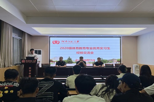 6月13日下午,体育学院在一楼大会议室召开“2020级体育教育专业实习经验交流会”,学院副院长刘光同、团委书记刘广宣、2020级学生代表、2021级和2022级部分同学参加了会议。会议由教学秘书朱春山主持。