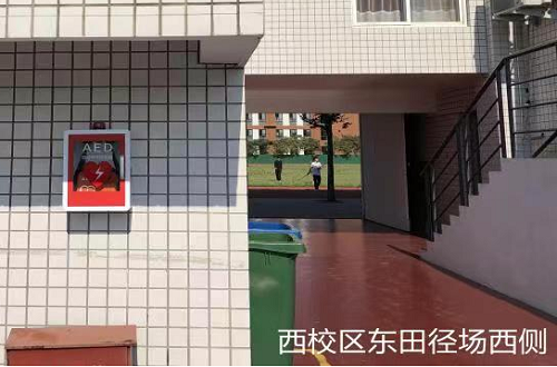 为落实教育部、中国红十字会总会办公室《关于进一步推进学校应急救护工作的通知》等文件通知,切实发挥我校作为教育部首批急救教育试点学校示范作用,学校近日在东、西区田径场和综合体育馆配置了3台AED,分别安装在东、西区操场和西区综合馆(具体位置见图1、2、3),切实保障师生生命安全。自动体外除颤器的入驻,不仅使我校急救水平得到了一定的提高,能够更好地为师生生命安全保驾护航;而且还有助于培养师生的急救意识,掌握急救技能,为急救知识普及奠定良好基础。